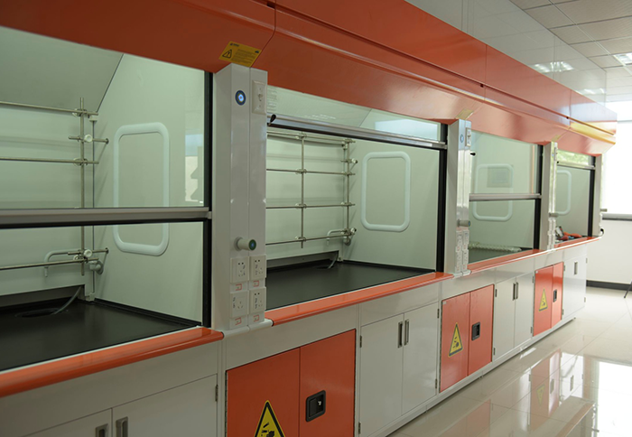 主体采用双层国标1.0mm镀锌钢板(鞍钢优质钢材),外层为钢板,内层为抗腐蚀内衬材料;台面前为应采用氟化物涂层,其余部位钢制部分采用环氧树脂涂层;移门为厚度≥5mm的双层夹膜防爆安全玻璃;所有通风柜的内衬材料(抗倍特板)为≥5mm厚高强度、易清洗、耐腐蚀、耐高温的材料制作,导流板必须与内衬为同一材料;底柜柜体:柜体与实验台柜体制作要求同;通风柜照明:两个荧光灯管,快速启动类型;带液晶控制面板,控制风机、开度、灯的控制。