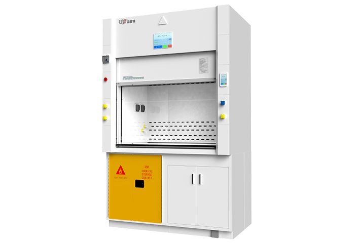 主体采用双层国标1.0mm镀锌钢板(鞍钢优质钢材),外层为钢板,内层为抗腐蚀内衬材料;台面前为应采用氟化物涂层,其余部位钢制部分采用环氧树脂涂层;移门为厚度≥5mm的双层夹膜防爆安全玻璃;所有通风柜的内衬材料(抗倍特板)为≥5mm厚高强度、易清洗、耐腐蚀、耐高温的材料制作,导流板必须与内衬为同一材料;底柜柜体:柜体与实验台柜体制作要求同;通风柜照明:两个荧光灯管,快速启动类型;带液晶控制面板,控制风机、开度、灯的控制。